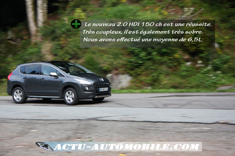 Notre véhicule était animé par un bloc 2.0 HDI 150 ch inédit dans la gamme Peugeot. Il nous a enchantés, car il offre une souplesse et une vigueur bien supérieure au 2.0 hdi 136. Sa puissance de 150 ch à 3 750 tours et son couple de 340 nm dès 2 000 tours regroupent tonus et souplesse de conduite. La consommation est faible pour le poids de l’engin .