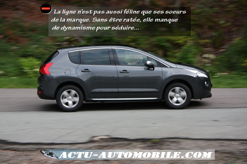 Les commentaires des personnes que nous avons croisées sont assez contrastés mais d’une manière générale le 3008 a fait bonne impression. Il faut dire que nous disposions de la finition Premium Pack incluant : des bas de caisse en aluminium, des coques de rétroviseurs chromés ainsi que des sabots avant & arrière en inox. Tout ceci contribue à valoriser le côté un peu haut de gamme du crossover, dommage que le joint chromé soit apposé uniquement sur la partie haute des vitres.