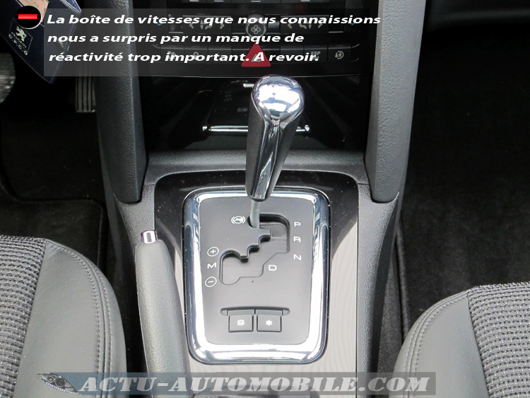 En revanche les temps de dépassements sur nationale pour doubler un camion par exemple s’avèrent parfois un peu justes. Entre le poids conséquent de la voiture et la gestion de la boîte de vitesse quelque peu capricieuse, il arrive parfois que les dépassements deviennent laborieux. La transmission automatique lors des descentes des rapports verrouille de façon anormale le 3ème rapport nécessitant de reprendre la main sur le sélecteur de vitesse pour remonter sur le rapport supérieur. Nous avions déjà rencontré ce phénomène lors de notre essai de la Citroën C5 équipée de la même combinaison moteur/transmission.
