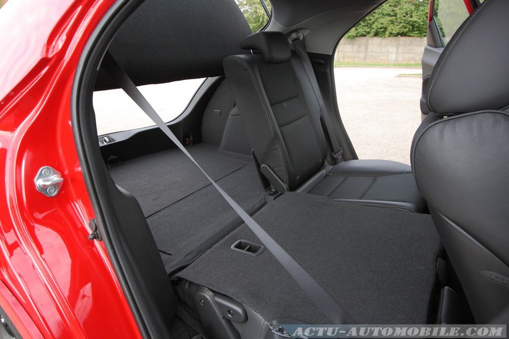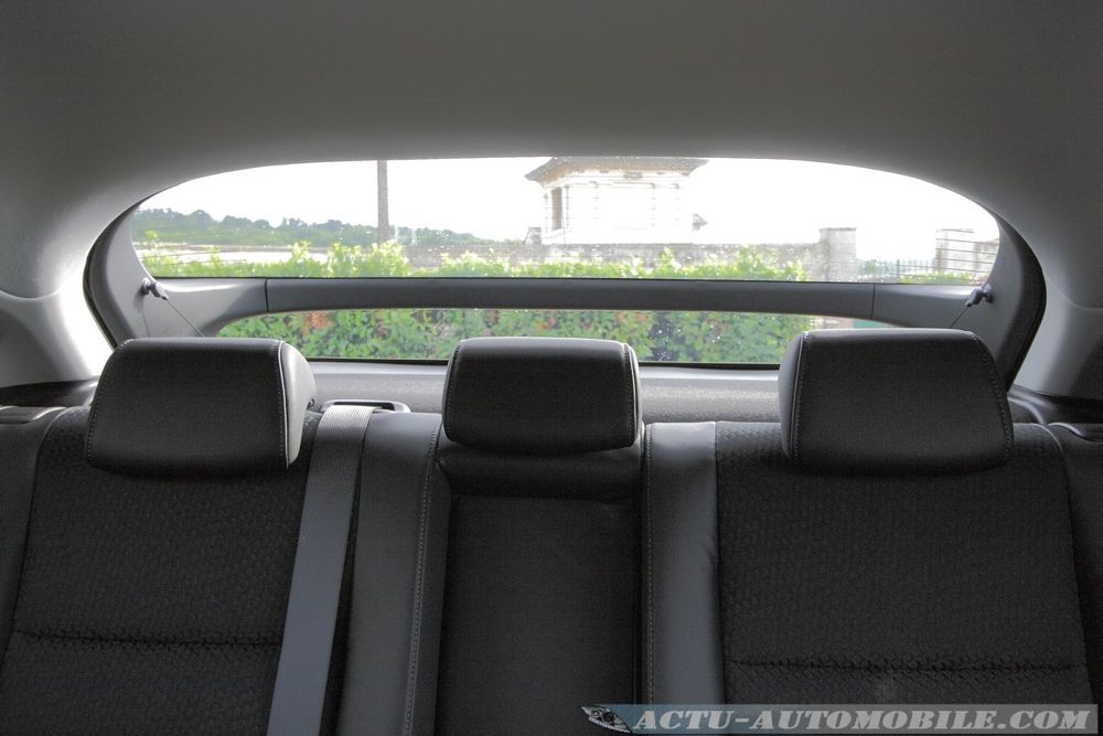 Enfin, la visibilité n’est guère le point fort de la japonaise, surtout à l’arrière. L’aileron coupe la vitre arrière en deux, ce qui ne laisse que très peu d’espace.