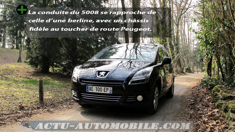 Fidèle à sa réputation Peugeot nous livre ici un 5008 disposant d’un train avant de type pseudo McPherson et d’un essieu arrière à traverse déformable. L’objectif du constructeur visant à proposer une tenue de route proche d’une berline nous semble atteint.